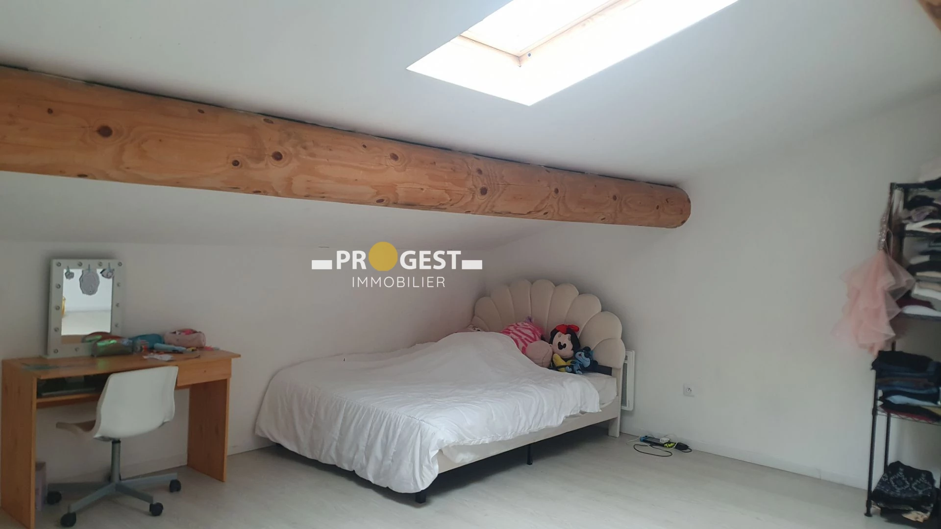 Il se compose d'un séjour lumineux avec coin cuisine, d'une salle d'eau avec toilettes, ainsi que 2 chambres, dont une à l'étage avec le toit mansardé d'environ 30 m² sous les combles à l'étage, offrant un bel espace de vie ou une chambre parentale confortable.